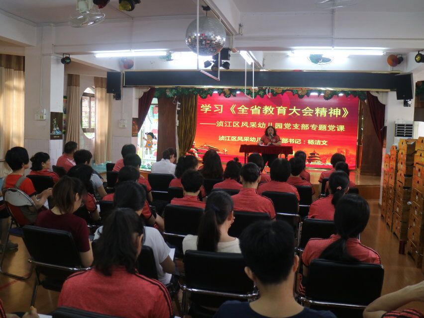 2019年6月17日下午,浈江区风采幼儿园党支部开展了学习《全省教育大会精神》专题党课活动。本次活动由党支部书记、园长杨洁文主持并做主讲,全体教职工参会学习。